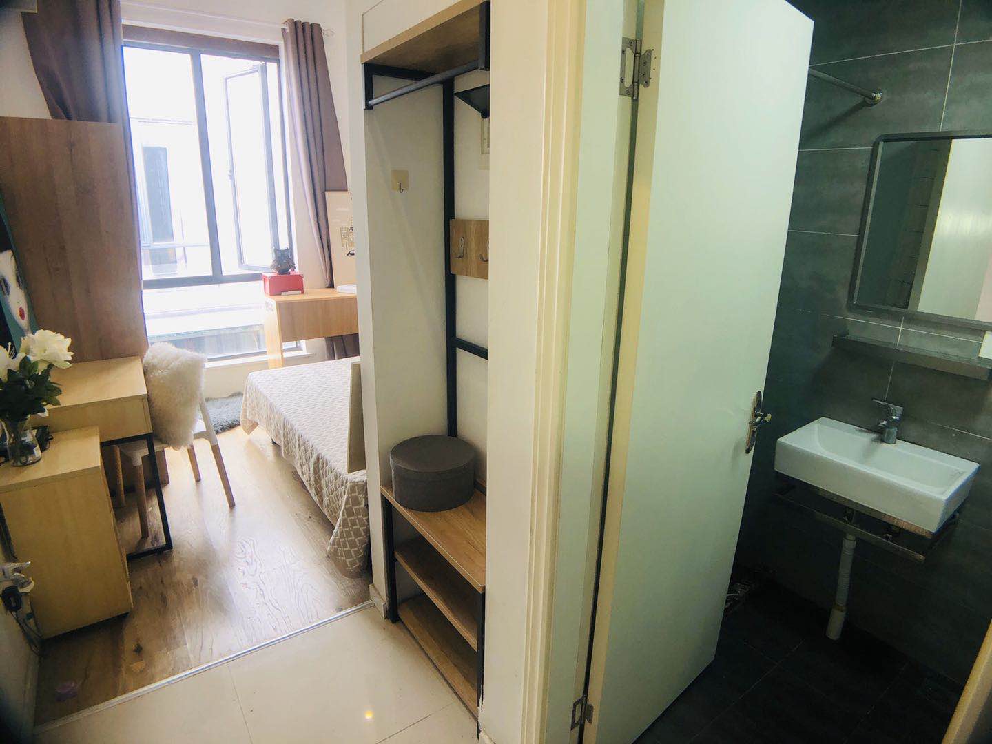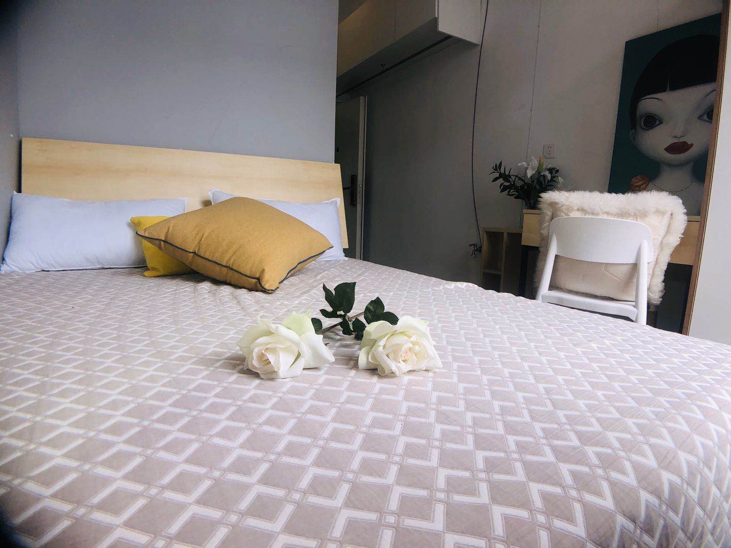 【户型区别】A户型¥2500-¥2800/月,现代简约风,房间面积稍小,有外窗,采光通风较弱,空间布局合理,家具齐全精致,房间氛围温馨安静。B户型¥2900-¥3100/月,田园风一居室,房间面积较大,活动范围较广,有外窗,采光通风良好,房间氛围雅致舒适。